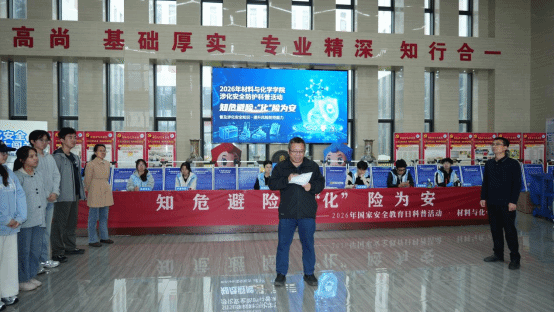 4月16日,材料与化学学院承办的涉化安全科普活动——“实验室安全防护大闯关”在科教五楼一楼大厅顺利举办。作为学校2026年全民国家安全教育日系列活动的重要组成部分,本次活动通过寓教于乐的互动形式,为师生们带来了一场别开生面的安全教育体验。